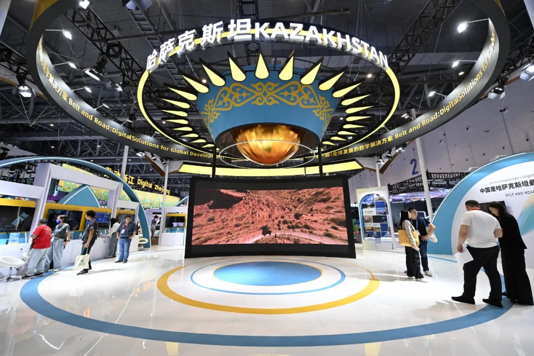 2024年9月24日,在杭州举行的第三届全球数字贸易博览会上哈萨克斯坦展区吸引参观者参观。中新社记者王刚 摄